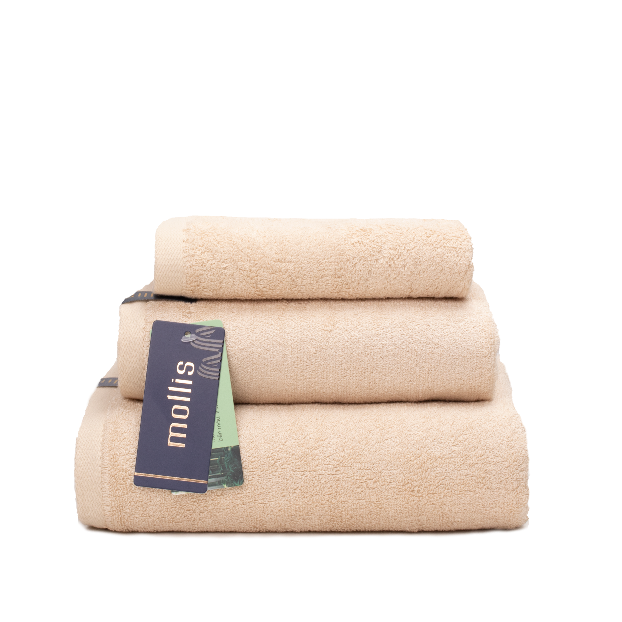 1. Thông Số Sản Phẩm Thương hiệu: Mollis Dòng sản phẩm: Sợi tre Bamboo Kích thước & Trọng Lượng: + Khăn tắm: 60x120cm -321g + Khăn gội: 40x78 - 138g + Khăn mặt: 34x34 - 52g Màu sắc: Xám, Hồng, Vàng Xuất xứ: Việt Nam